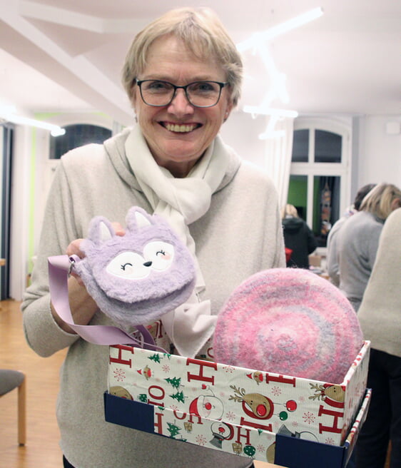 Die gefüllten und dekorierten Schuhkartons können noch bis zum 17. November bei den beteiligten Geschäften abgegeben werden. Anschließend werden die Pakete zur Sammelstelle in Lüdenscheid gebracht, von wo aus sie ihre Reise nach Berlin in die Weihnachtswerkstatt und – wenn alle Pakete durchgesehen sind – ihre Weiterreise in die Zielländer antreten. Wie im Vorjahr möchte Marianne Warninghoff wieder privat nach Berlin fahren, um in der Weihnachtswerkstatt mitzuhelfen, die Pakete zu kontrollieren und auf ihre Qualität zu prüfen. Damit soll sichergestellt werden, dass die beschenkten Kinder nur wertschätzende Geschenke erhalten. „Wir fahren diesmal zu dritt“, erzählt sie. Im Vorjahr, als sie mit Lydia Weber dort war, hatte sie ihre ehrenamtliche Mitarbeit in der Weihnachtswerkstatt, die sehr beliebt und nur mit Anmeldung möglich ist, mit dem Besuch einer Freundin in Berlin verbunden.