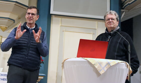 Der Auftakt-Gottesdienst der Gebetswoche fand am Sonntag, 11. Januar, um 10.30 Uhr in der Nicolai-Kirche statt. Verbunden war der Gottesdienst mit einer Medienausstellung, die vom Referenten organisiert worden war. Denn in diesem Jahr war Michael Klitzke von der Stiftung Marburger Medien zu Gast, der in seiner Arbeit christliche Gemeinden und Organisationen beim Einsatz von Literatur berät und unterstützt. Der gebürtige Lüdenscheider, der für fünf Großevangelisationen und eine Reihe weiterer Evangelisationsveranstaltungen verantwortlich zeichnete, ist Gebietsleiter der Stiftung in NRW. Einige Jahre gehörte er dem Vorstand des CVJM Lüdenscheid-West an und war später Vorstandsmitglied des Verbandes „Christen in der Wirtschaft“. Sein Hauptanliegen ist es, Gemeinden dabei zu helfen, den christlichen Glauben im Alltag sichtbar zu machen.