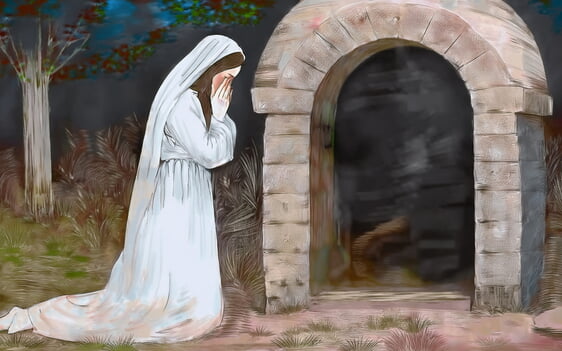 Maria stand vor dem Grab und weinte